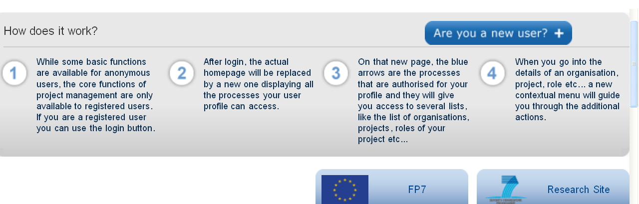 Currently the portal covers mainly actions under the 7th EU-Framework Programme for Research and Technological Development (FP7). In the future, its coverage will be extended to other programmes in the area of research and innovation.