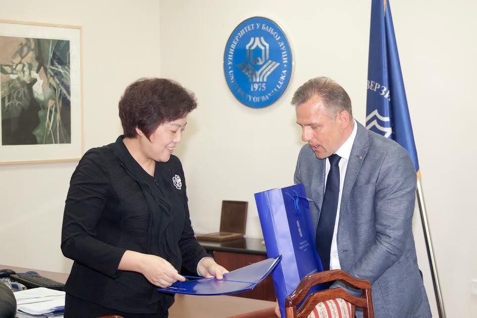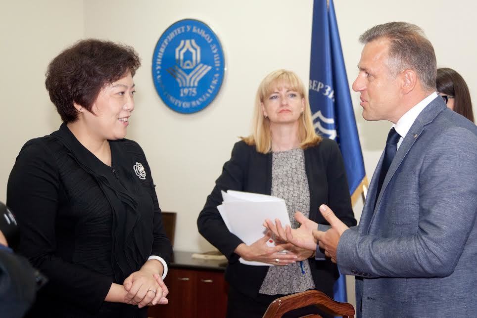 Ms Bo said she was pleased with the level of the cooperation realized, and added that the diplomatic mission headed by her would work on further improvement of this cooperation. On this occasion, Ms Bo officially handed to the Rector of the University of Banja Luka the invitation to the Third meeting of institutions of higher education of China with countries from Central and Eastern Europe, which is going to be held in Beijing this year. In the same period, at the invitation of his Chinese colleagues, the Rector is going to participate in the Fourth meeting as well, whose topic will be the dialogue on policies of higher education between China and countries from Central and Eastern Europe.