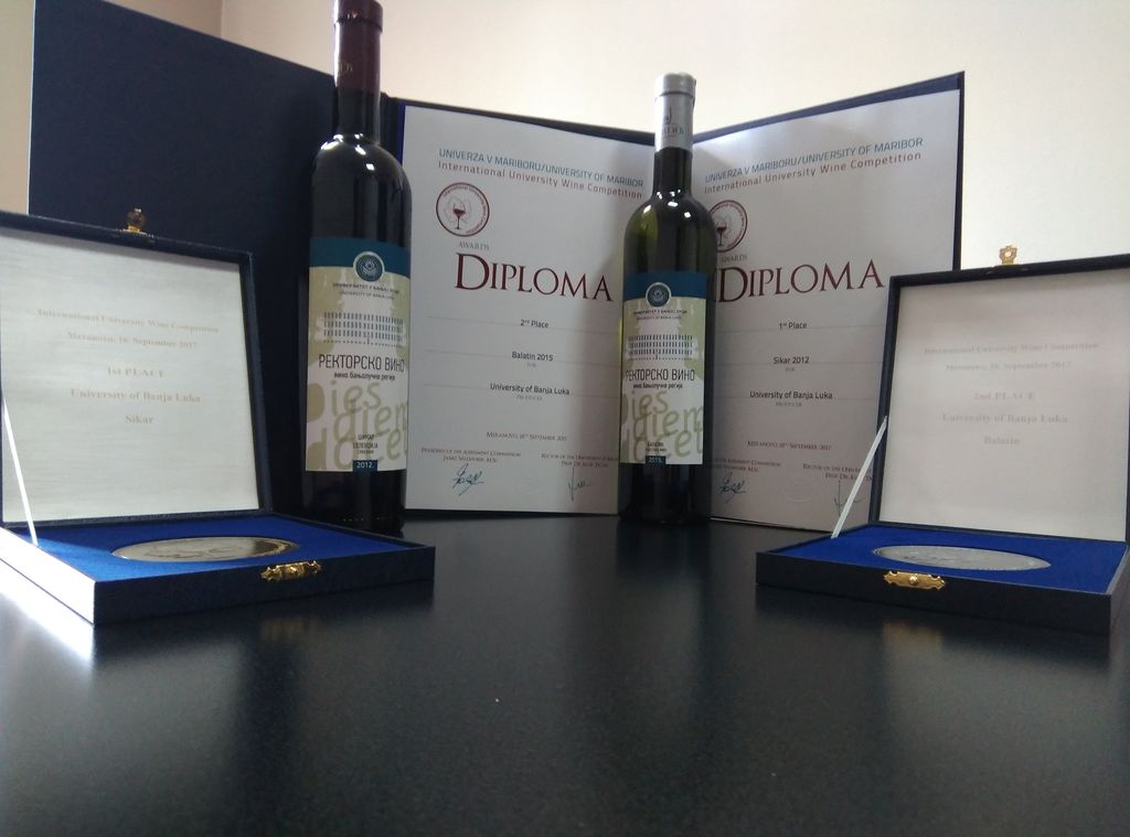 University of Banja LukaGeneralThe Rector’s wine of the University of Banja Luka was declared the best in the red wine category at the 10th International University Wine Competition, traditionally held on the occasion of the University of Maribor Day (Slovenia), while the one in the white wine category won the second place.
