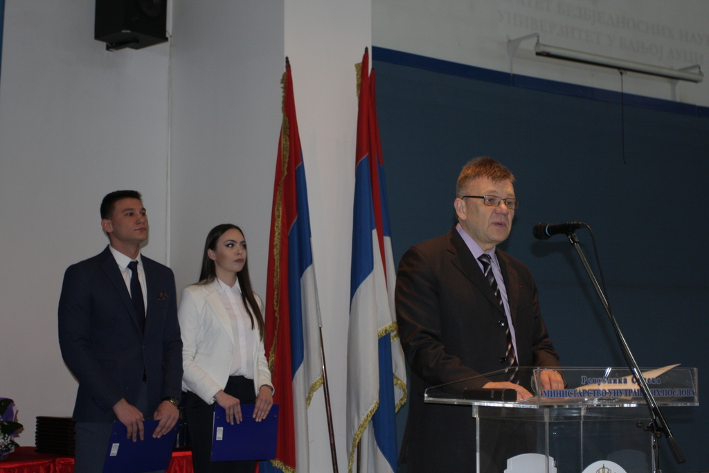 He expressed gratitude to Željka Cvijanović, the President of the Republic of Srpska, as it was her who decided to establish the Faculty of Security Science during her time as the Prime Minister of the Governemnt of the Republic of Srpska.