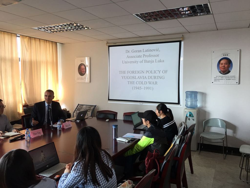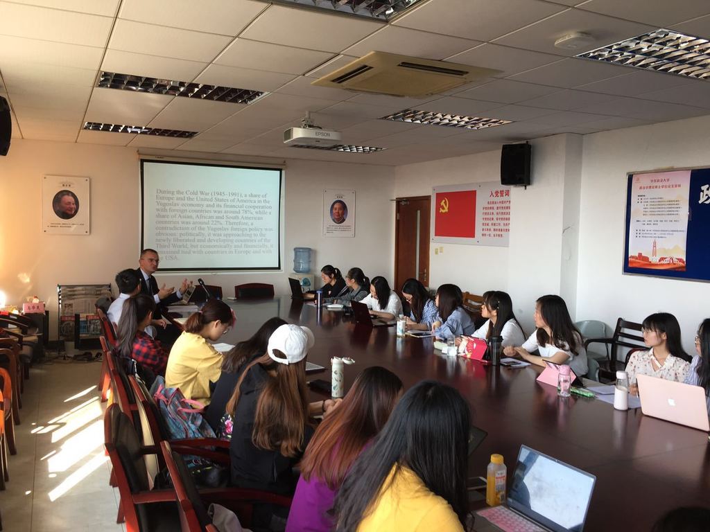 Representatives of UNIBL were particularly warmly received in Rectorate of ECUPL in Shanghai, where they talked to Prof. Chen Jingying, Vice President, Prof. Ni Tie, Acting Dean of the School of Criminal Justice, Prof. Wang Weiquan, Associate Dean of the School of Political Science and Public Administration, and Prof. Ma Le, Deputy Director of International Exchange Center. After the two Universities signed a Memorandum of Understanding in 2018, a new concrete step in developing of their mutual cooperation was a signing of the Agreement on Exchange of Academic Staff and Students. The two delegations talked about the improvement of cooperation in various fields, such as mutual projects and conferences, especially in security science. ECUPL was founded in 1952, it has around 1300 professors and researchers and around 18000 students within over 40 study programmes. ECUPL is particularly devoted to social sciences and humanities: law, political science, public administration, security science, criminology, sociology, social work, journalism, economy, Chinese language and literature, foreign languages, but also computer science and information technology. UNIBL representatives visited both ECUPL campuses: Changning and Songjiang. Professor Goran Latinović gave to Chinese students a lecture titled „The Foreign Policy of Yugoslavia during the Cold War (1945-1991)”.