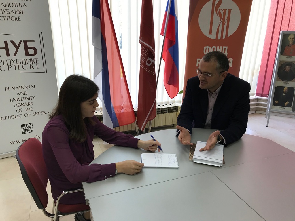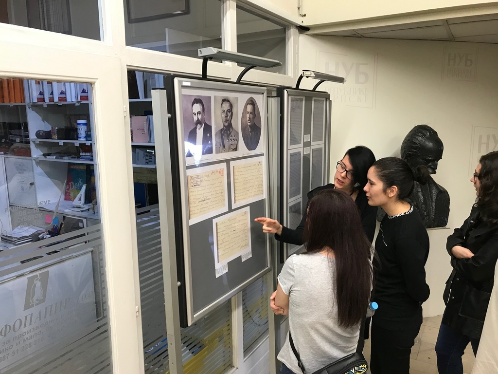 The students visited the Room of Remembrance of Petar Kocic, led by the documentarian Vanja Smula, MA, and attended the opening of the „Start of World War II” exhibition, organized by the Embassy of the Russian Federation and the Russian Cultural Center at the National and University Library of the Republic of Srpska. Professor Goran Latinovic, PhD, Vice Rector for Scientific Research and University Development, and Lilia Sabirova, Cultural Attaché at the Embassy of the Russian Federation in Bosnia and Herzegovina, talked about the possibility of having Russian universities presented at the University of Banja Luka next year.