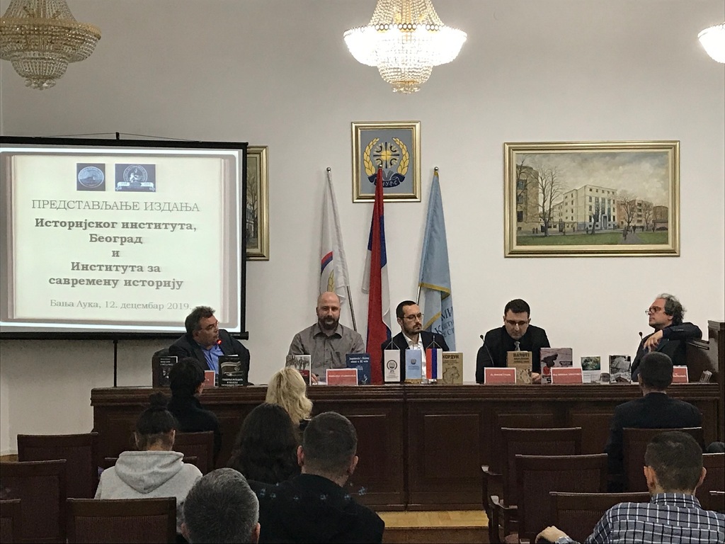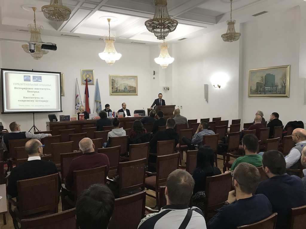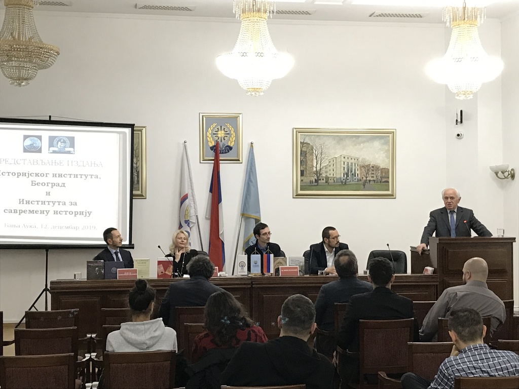 After signing the agreement, Professor Aleksandar Rastovic, PhD, and Biljana Vucetic, PhD, gave lectures to the professors and students of history at the Faculty of Philosophy. The day before, on 12 December 2019, some of the editions of both institutes were presented at the Academy of Sciences and Arts of the Republic of Srpska. The academic Drago Brankovic gave a welcome speech and the event was moderated by Nikola Ozegovic.