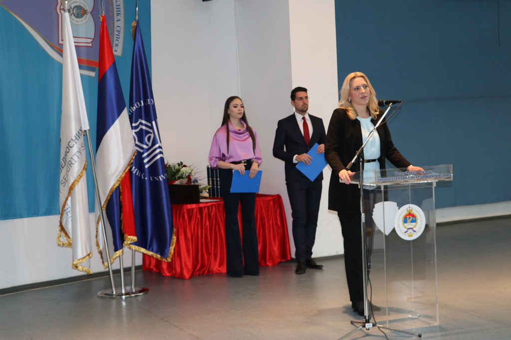 The ceremony was, among others, attended by Vice Rector for Scientific Research and University Development Prof. Goran Latinovic, PhD, Vice Rector for International and Interuniversity Cooperation Prof. Biljana Antunovic, PhD, Vice Rector for Teaching and Student Affairs Prof. Strain Posavljak, PhD, Financial Director of the University Dusko Lazic, Assistant to the Minister for Higher Education Radmila Pejic, Director of RS Police Darko Culum and other guests.