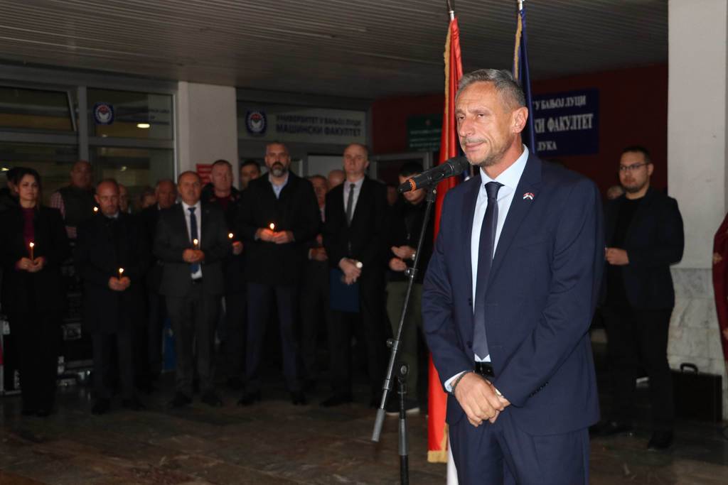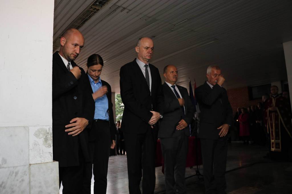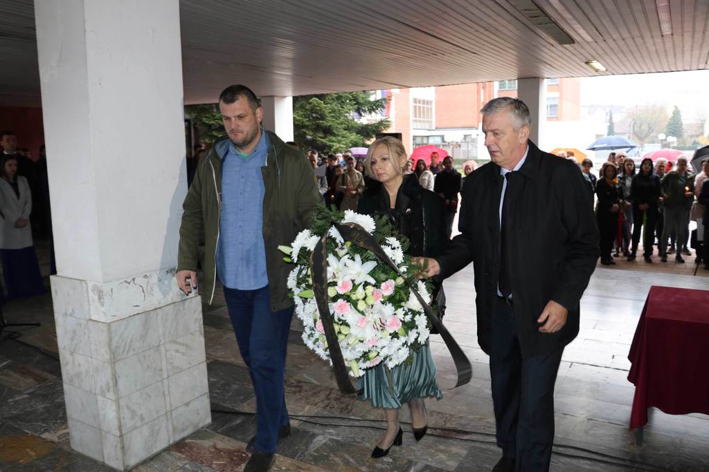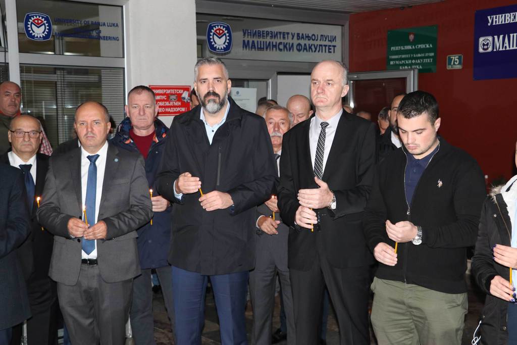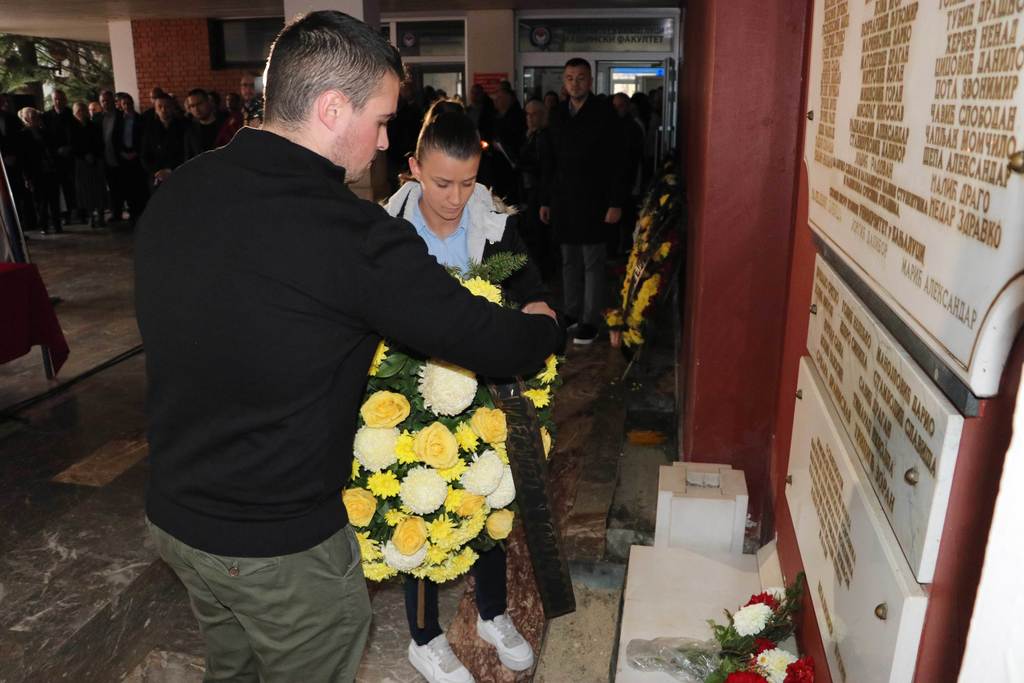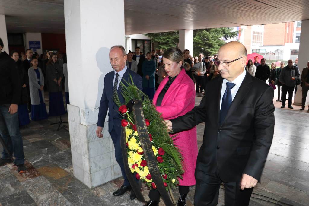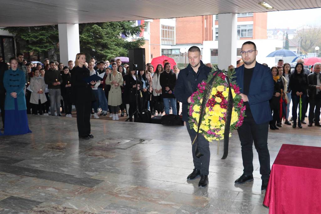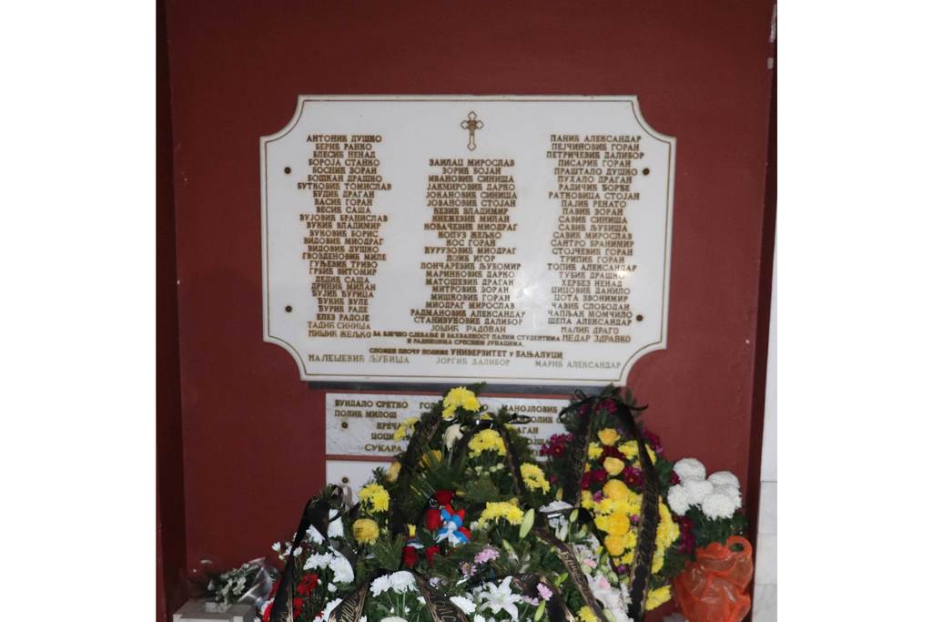 Wreaths were also laid at the commemorative plaque by the families of fallen students and employees, representives of the Veterans' Organization of the City of Banja Luka, representatives of the Ministry of Labour, War Veterans and Disabled Persons’ Protection, deans of the University members and members of the University Steering Board, Assistant Minister for Secondary and Adult Education Jasmina Boloban, representatives of the Students’ Union and the Students’ Parliament of the University.