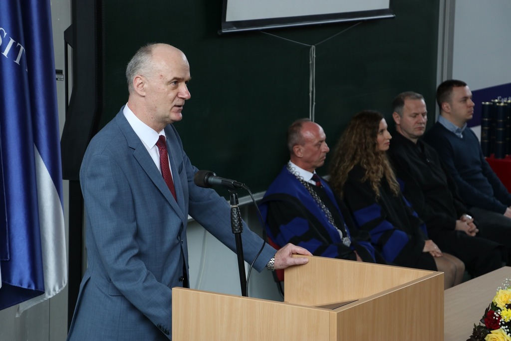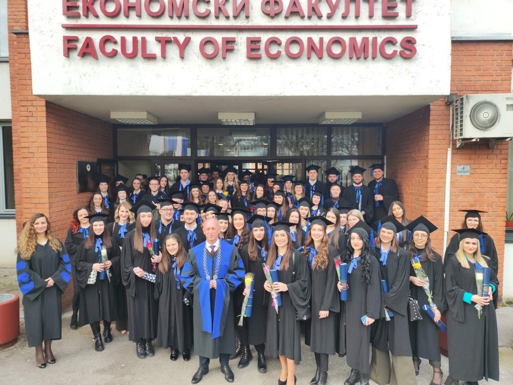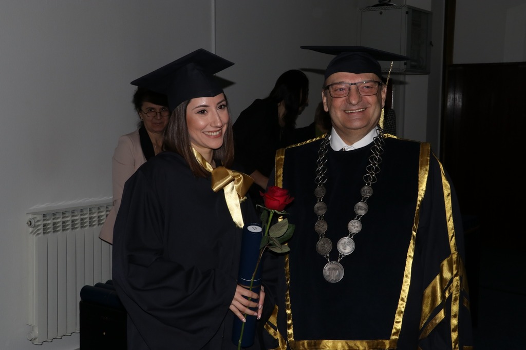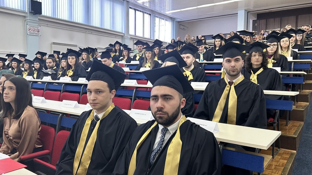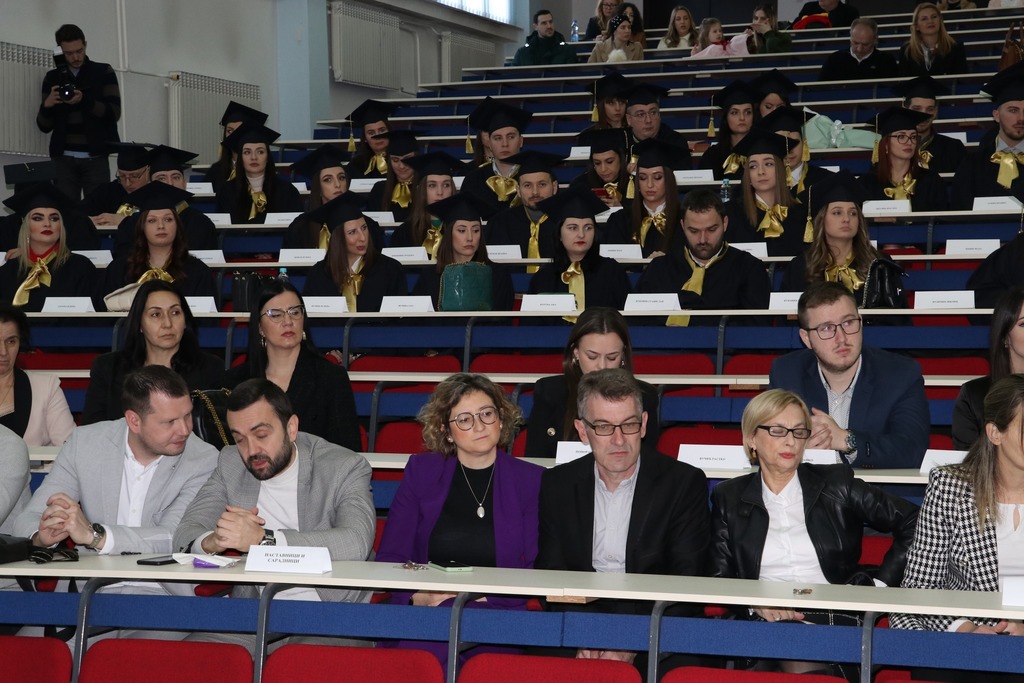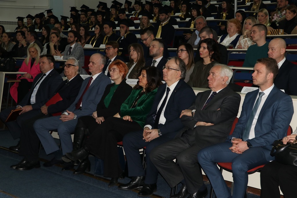 On the occasion of the faculties’ anniversary, graduates of the first and second cycle of studies were also promoted. Thus, at the Faculty of Law, 82 graduates of the first and six graduates of the second cycle of study were promoted, and at the Faculty of Economics, 85 graduates of the first and nine graduates of the second cycle of study were promoted.