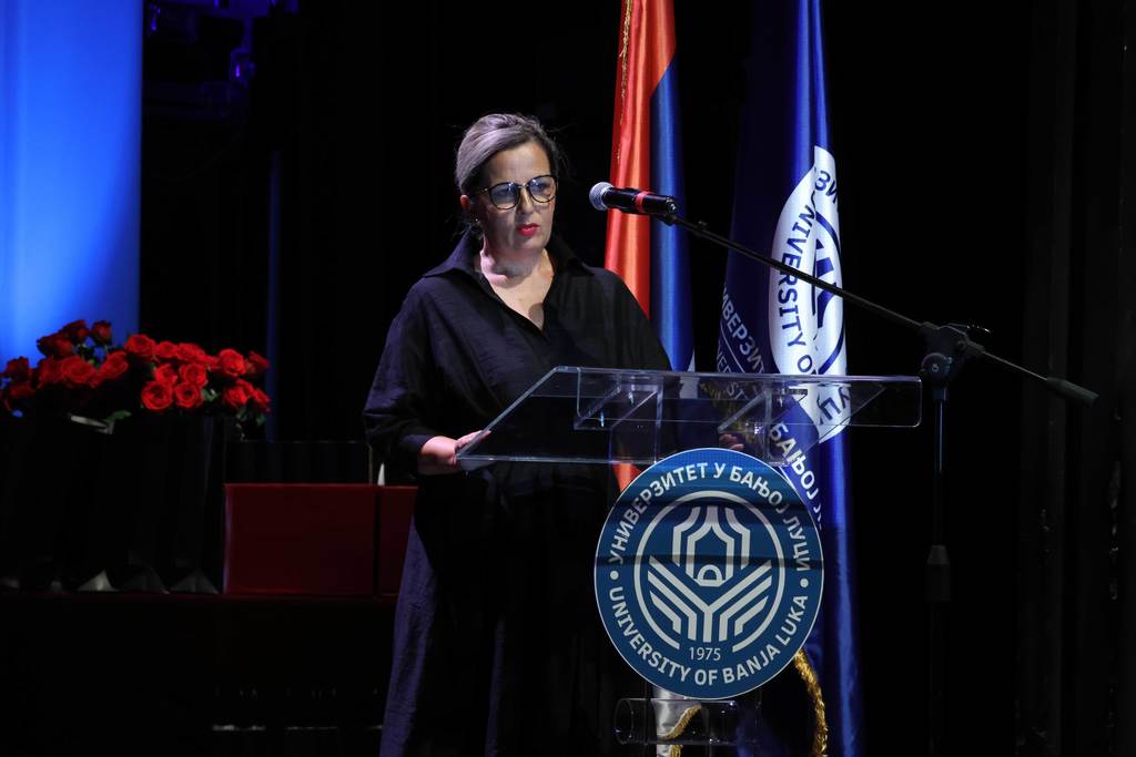 At this ceremony, which was also attended by Vice-Rector for International and Interuniversity Cooperation Prof. Milica Balaban, PhD, and Minister of Education and Culture of the Republic of Srpska Željka Stojičić, distinguished individuals and institutions received commendations, the best students were awarded with plaques, and graduates of the first and second study cycles of the Academy of Arts of the University of Banja Luka were promoted.