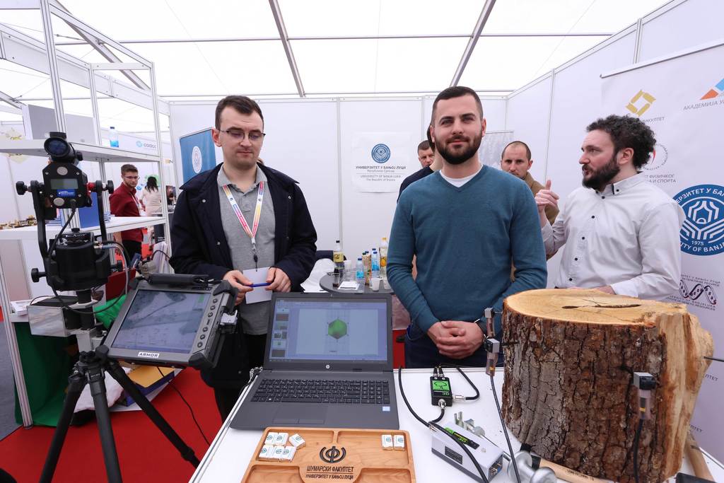 Rector of the University of Banja Luka Prof. Radoslav Gajanin, PhD, Vice-Rector for Teaching, Student Affairs and Quality Prof. Milica Balaban, PhD, Vice-Rector for Material and Human Resources Prof. Dalibor Kesić, PhD, Vice-Rector for International and Interuniversity Cooperation Prof. Kristina Pantelić Babić, PhD, Vice-Rector for Scientific Research and Development Prof. Aleksandar Ostojić, PhD, Finance Director Duško Lazić and Secretary General to the University Đorđe Markez attended the opening of the fair at the Faculty of Architecture, Civil Engineering and Geodesy and the Faculty of Forestry of the University of Banja Luka. Minister for Scientific and Technological Development and Higher Education