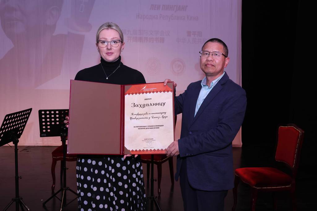 It is an award that is the most important literary award of the Association of Writers of the Republic of Srpska, and the award ceremony is part of the "Ninth International Literary Encounters". As a sign of gratitude for the support and help in organizing the "Open Book" literary award ceremony, the Association of Writers of the Republic of Srpska also awarded a special certificate of appreciation to the Confucius Institute of the University of Banja Luka.