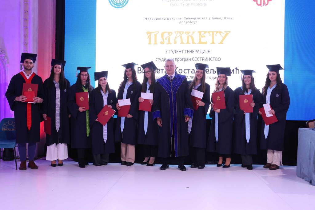 University of Banja LukaGeneralA solemn academy on the occasion of 46 years of successful work of the Medical Faculty at the University of Banja Luka (UNIBL), promoting graduated medical doctors, doctors of dental medicine, masters of pharmacy and graduates of health sciences, who completed their studies over the past year, was held on 15 November 2024 in Cultural Center „Banski Dvor“.