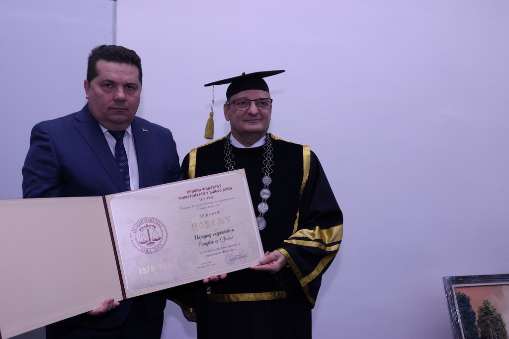 The Dean of the Faculty of Law at the University of Banja Luka, Prof. Željko Mirjanić, PhD, stated that this faculty is an academic temple of education, science, and thought in the field of law. "Over the course of fifty years, 5,611 students have attained the title of Bachelor of Laws, and 145 students have attained the title of Master of Laws. The scientific title of Doctor of Laws has been awarded to 48 candidates", Dean Mirjanić said, and noted that these figures demonstrate the unwavering high educational standards of the Faculty of Law, producing professionals who successfully lead the country.