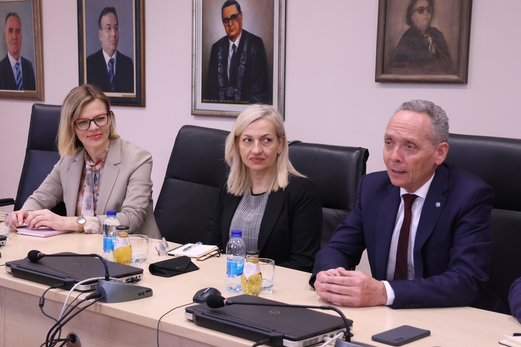The meeting in the Rectorate was also attended by the Vice-Rector for human and material resources, Prof. Dalibor Kesić, PhD, and UNICEF representatives – manager of the health and nutrition program Dr Jela Aćimović, manager of the social policy program Selma Kazić, and expert associate for the youth, Amila Madžak.