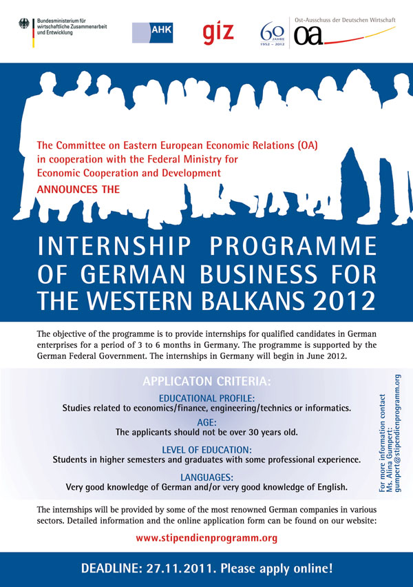 Stipendije i programiUniverzitet u Banjoj LuciU četvrtak, 20.12.2011. godine, u 13:30 časova u amfiteatru Mašinskog fakulteta, biće održana prezentacija programa stipendija DAAD-a (Njemački servis za akademsku razmjenu - www.daad.de) i stručnih praksi njemačke privrede (www.stipendienprogramm.org ). Pozivamo sve zainterosovane studente, kjao i diplomce da prisustvuju prezentaciji.