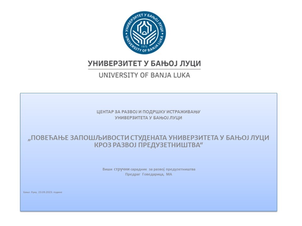 Tokom ovog događaja, predstavljeno je sedam prezentacija i modula koji podstiču razvoj studentskog preduzetništva i doprinose boljem zaposlenju studenata Univerziteta u Banjoj Luci, sa fokusom na studente završnih godina studija prvog i studente drugog ciklusa. Takođe su prezentovane pozitivne i uspješne priče o nastanku studentskih preduzeća kod nas i u Republici Srbiji.