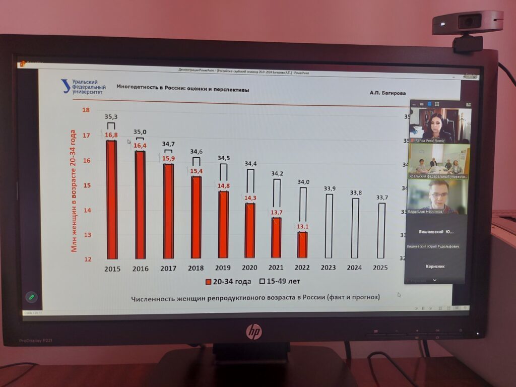 Tako je zamjenica direktora za nauku i inovacije Visoke škole za javnu upravu i preduzetništvo Instituta za ekonomiju i menadžment Uralskog federalnog univerziteta sa sjedištem u Jekaterinburgu dr Ana Petrovna Bagirova održala prezentaciju „Višečlane (mnogodjetne) porodice u Rusiji: procjene i izgledi”. Vanredna profesorka Instituta za ekonomiju i menadžment Uralskog federalnog univerziteta prof. dr Oksana Mihajlovna Šubat imala je prezentaciju ,,Višečlane (mnogodjetne) porodice u ruskim regionima: da li su ekonomski faktori važni?”, dok je doktorand i alumnista istoimene institucije Aleksandar Vasiljevič Nešatajev govorio o temi „Da li ruska filmska produkcija utiče na odliv mladih iz ruralnih sredina? (na osnovu rezultata analize sadržaja)ˮ. Bila je ovo prilika da učesnicima seminara prezentaciju održi i asistent na Katedri za istoriju države i prava Tuljskog državnog univerziteta Milan Stojanović. Asistent Stojanović govorio je na temu „Demografski problemi u Rusiji – verzije i protivrječnosti”.