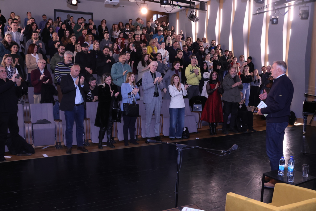 On je tokom razgovora u prepunom Studentskom kulturnom centru, koji je vodila prof. Biljana Đurović, mladima poručio da je, bez obzira na to čime se bave, važan dugotrajan i naporan rad ako žele dobre rezultate, ističući da je vrijeme najveći kritičar nečijeg rada i djela.