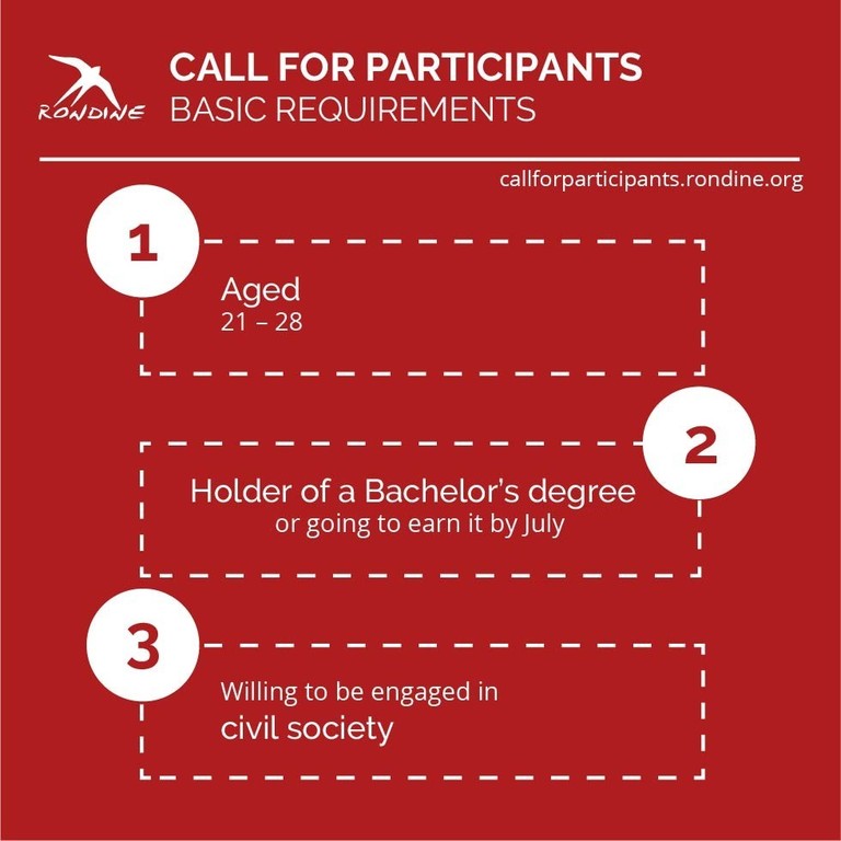 Rondine Cittadella della Pace je program namijenjen diplomcima (ili studentima koji će završiti osnovne studije do jula 2026. godine) uzrasta od 21 do 28 godina, a koji imaju snažnu posvećenost civilnom društvu. Učesnici će provesti 18 mjeseci u međunarodnom kampusu u Toskani uz istovremeno pohađanje prve godine master studija u Italiji.