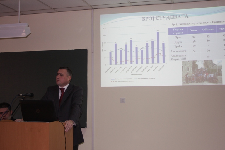 Декан Говедар се у свој презентацији осврнуо на рад Факултета у протеклој школској години, али и на све претходне године када се Факултет формирао и стасавао у респектабилну високошколску институцију. „Факултет се од свог оснивања држао једног основног принципа, а то је побољшање квалитета образовног процеса и научно-истраживачког рада“, истакао је декан, подсјећајући да је првих десет година Факултет користио простор других факултета, прије свега Правног и Економског, те Машинског и Технолошког. „2002. године, захваљујући, прије свега, ЈПШ „Шуме РС“ и Министарству пољопривреде и шумарства, обезбијеђена су средства за изградњу простора у коме је сада Шумарски факултет. Истина тај простор је јако скроман. За оптималан рад, умјесто постојећих 1100, треба нам 3500 метара квадратних простора. Недостатак простора је наш круцијални проблем, па је усељење у нову зграду нешто што је приоритетна ствар за нас у наредном периоду“.