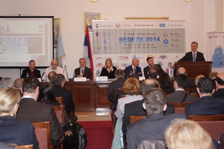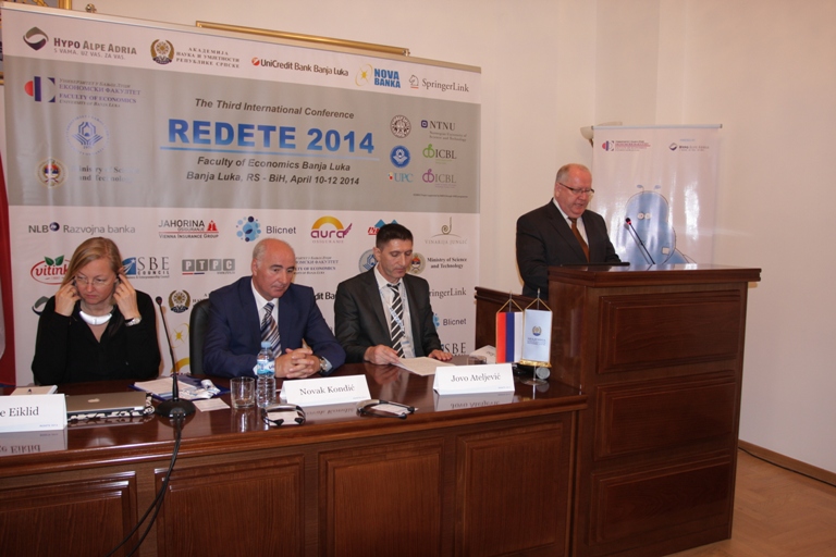 Предсједавајући Конференције проф. др Јово Атељевић је у свом уводом обраћању, након ријечи добродошлице и подсјећања да је Конференција REDETE 2014 окупила преко 200 свјетски признатих економских стручњака из 25 земаља, изразио увјерење да ће изабране истраживачке теме из домена економског макро-окружења, међународног пословањa , улоге државе у економији, пословне стратегије, корпоративног управљања, иновација и трансфера технологија , предузетништва, управљањa људским ресурсима и бројних других, отворити пуно могућности за дискусију, али и допринијети рјешавању неких од проблема са којима се суочавају земље у транзицији.