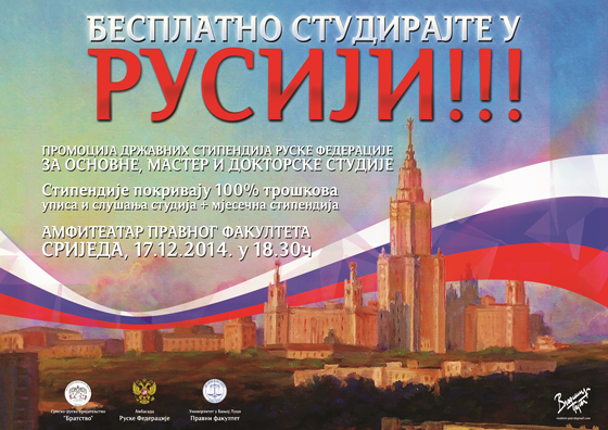 Стипендије и програмиУниверзитет у Бањој ЛуциСрпско-Руско пријатељство „Братство“ у сарадњи са Амбасадор Русије у Босни и Херцеговини, по четврти пут у Бањој Луци организује промоцију државних стипендија Руске Федерације.
