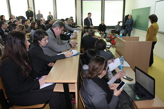 Декан Кондић је упознао госте из Амбасаде САД да је Економски Факултет прошле седмице прославио 41 години свог постојања и рада, да је за то вријеме на основним студијама уписано 12 хиљада студената, од чега је 5200 студента добило академско звање дипломирани економиста , 132 магистра економских наука , двадесет магистара економије и 66 доктора економских наука, те да пролазност на Факултету од 43 % за протеклих 41 годину, говори у прилог строгим критеријима и квалитету извођења наставе на Факултету.