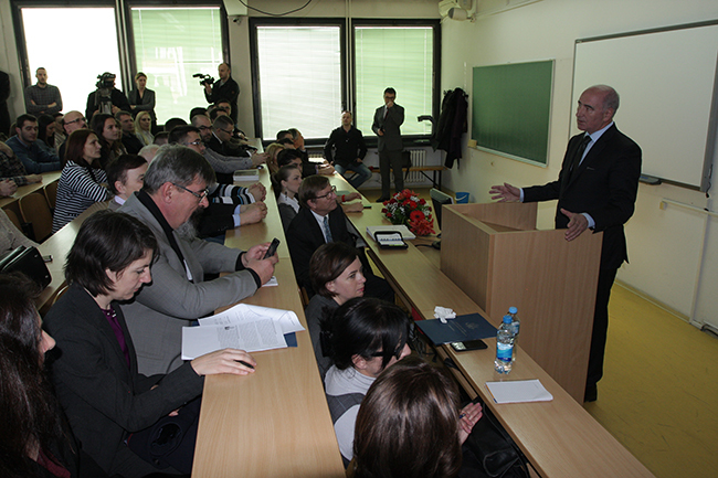Декан Економског факултета проф. др Новак Кондић је захвалио амбасадору САД на спремности да са студентима и наставницима разговара на наведене теме, чим је како је истакао, настављена добра и корисна пракса предавања и разговора са амбасадорима свих земаља акредитованим у БиХ, као и великог броја међународних експерата из области економије.