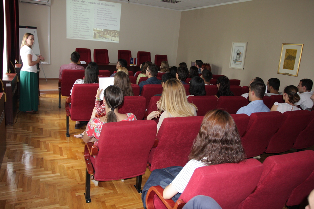 За стране студенте из Грчке, Румуније, Португала, Индије, Индонезије, Русије, Италије, Србије, Никарагве, Турске, Азербејџана, Македоније, Кине и Украјине, у Ректорату Универзитета организован је пријем и презентација током које су имали прилику да од Јелене Рожић вишег стручног сарадник за међународну сарадњу сазнају више о нашем Универзитету, као и активностима на плану међународне сарадње, с акцентом на онима у којима учествују студенти.
