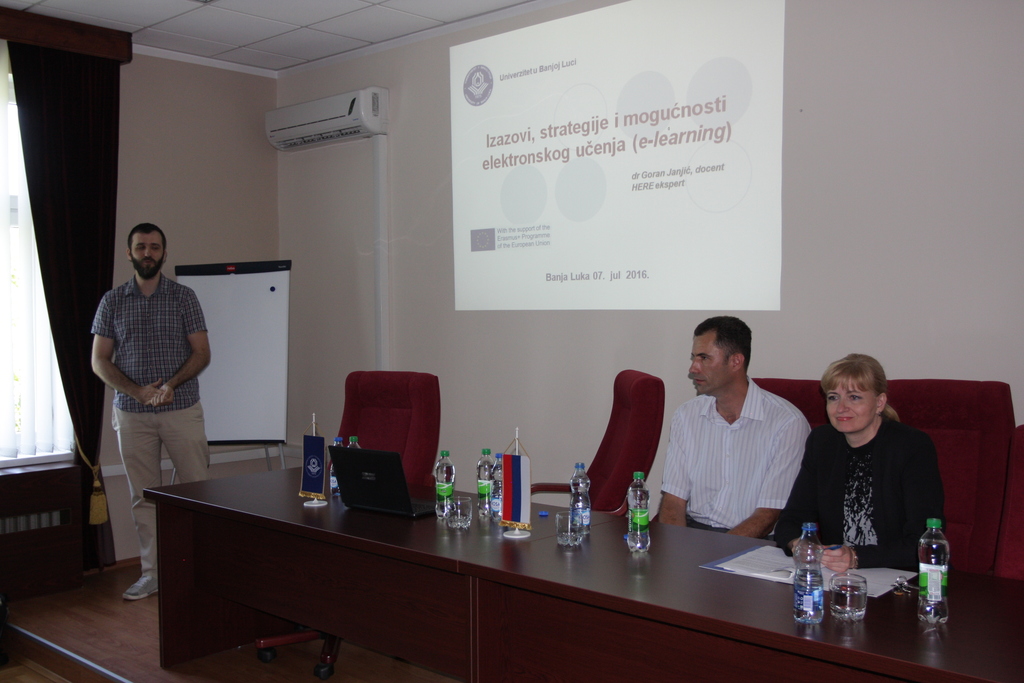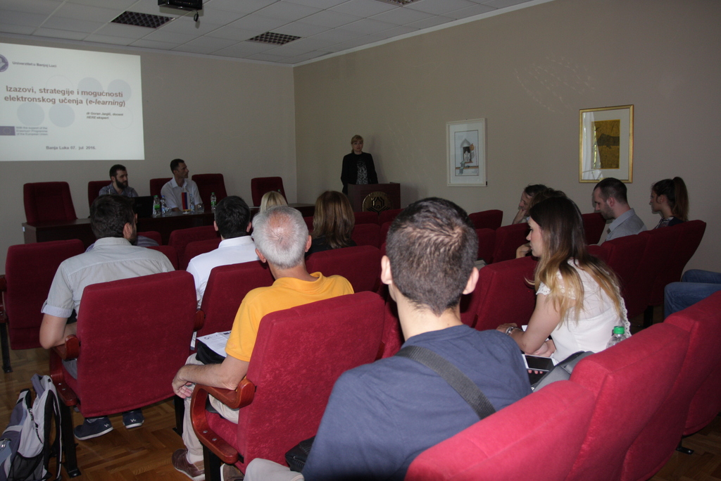 Универзитет у Бањој ЛуциОпштеУ Ректорату Универзитета у Бањој Луци, 07. јула 2016. године одржана је презентације под називом ‘‘Отворени образовни ресурси и е-учење”. Организатори догађаја били су Архитектонско-грађевинско- геодетски и Машински факултети Универзитета у Бањој Луци, а презентација је уприличена како би се студенти и наставници Универзитета упознали са предностима електронски подржаног учења и отворених образовних садржаја.