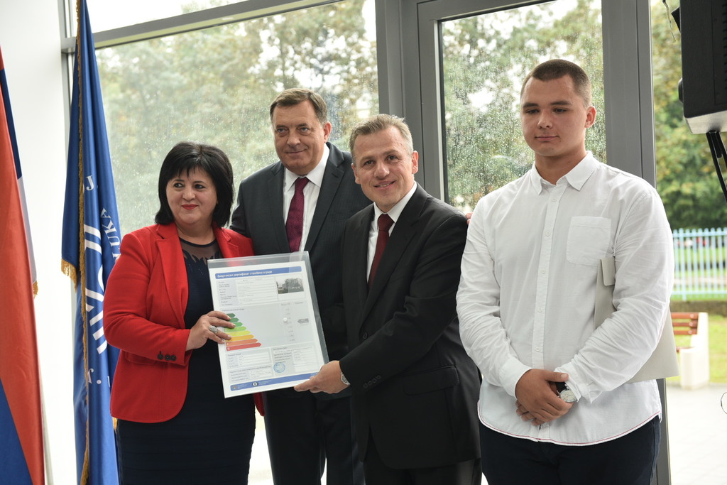 Будући да је IV павиљон први објекат у Републици Српској којем је издат енергетски цертификат, свечаност отварања овог објекта, била је прилика да потпредсједник Владе Републике Српске, министар за просторно уређене, грађевинарство и екологију госпођа Сребренка Голић званично уручи цертификат ректору Универзитета.