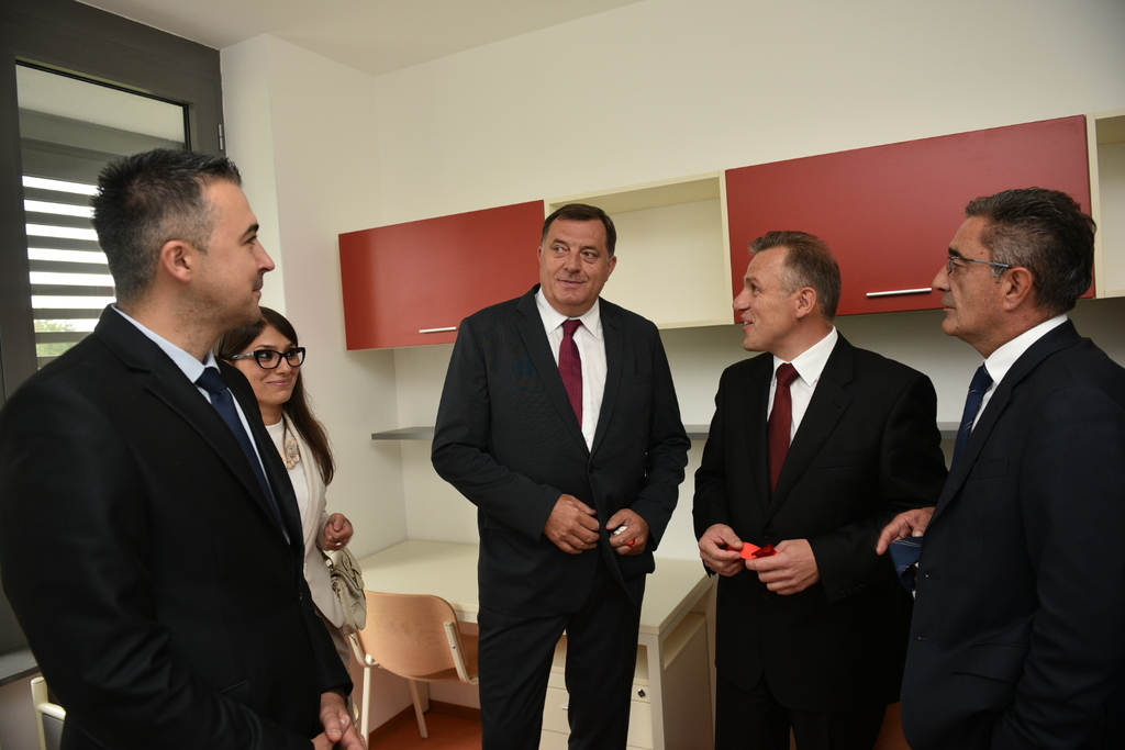 Предсједник је истакао да је трајно опредјељење републичких институција да се ради на унапређењу услова студирања, за шта су, између осталог, доказ изградња овог, као и домова на Палама и у Фочи, те додао да се истовремено мора радити и на унапређењу квалитета знања и подизању рејтинга универзитета.