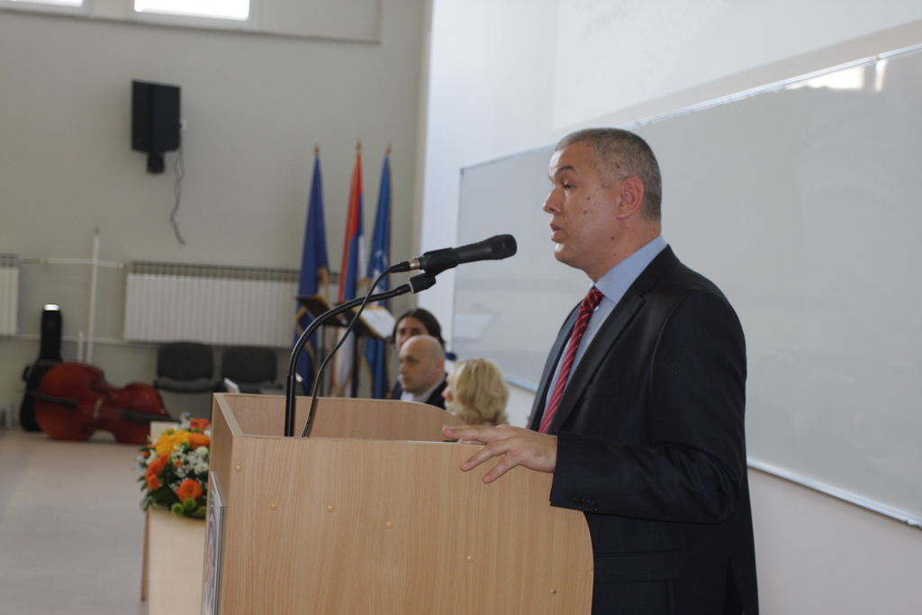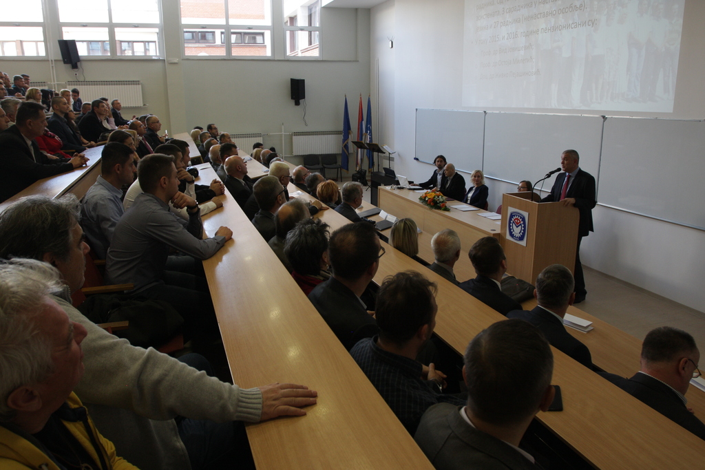 У име декан машинских факултета из Србије, присутне је поздравио проф. др Ненад Павловић, декан Машинског факултета у Нишу који је подсјетио на нераскидиву везу међу машинским факултетим с обје стране Дрине, као и на значај машинске струке за развој човјечанства.