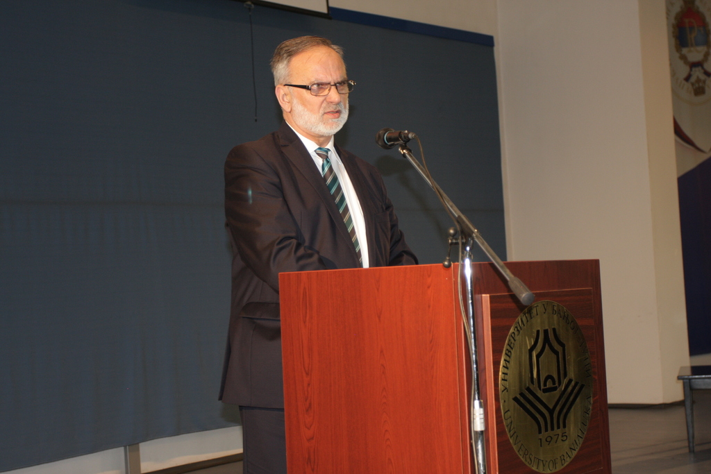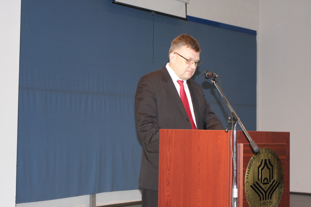 У име Универзитета, присутнима се обратио и ректор проф. др Милан Матаруга, те подсјетио да је оснивању ФБН као организационе јединице нашег Универзитета претходила више од годину и по дуга процедура која је захтијевала пун ангажман служби и тијела Универзитета у сарадњи са Министарством просвјете и Министарством унутрашњих послова како би се створиле правне, просторне, кадровске и финансијски претпоставке за његов рад.