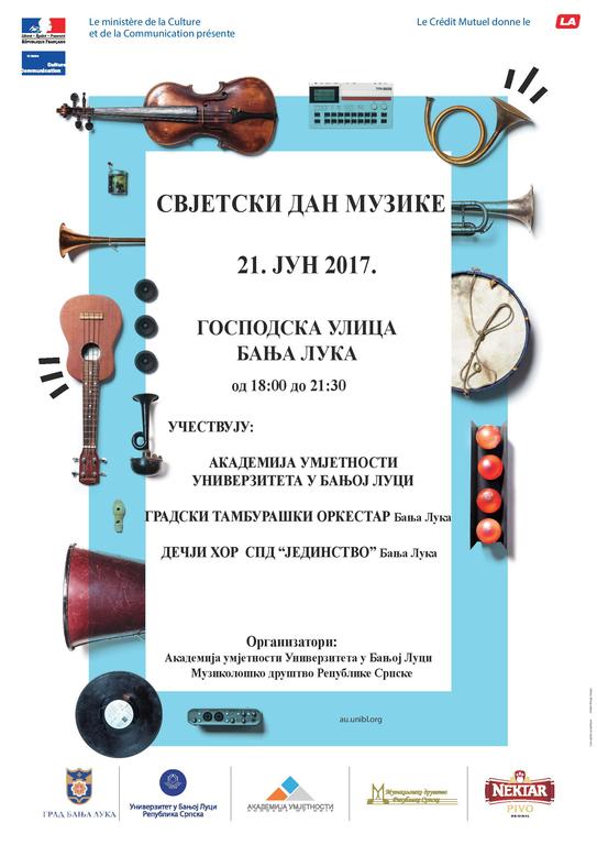 Универзитет у Бањој ЛуциОпштеКао и претходних шест година, Академија умјетности Универзитета у Бањој Луци у сарадњи са Музиколошким друштвом Републике Српске обиљежава Свјетски дан музике 21.06.2017. године.