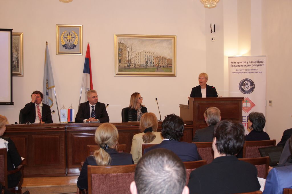 О значају сарадње како два универзитета тако и акадамске заједнице и агробизниса, говорила је и амбасадор Њемачке гђа Хохман која је подржала организаторе скупа у њиховој намјери да расвијетле једну овако битну тему, те изразила очекивање да ће у БиХ ускоро бити донесена стратегија развоја пољопривреде, што би, како је истакла омогућило лакши и бржи приступ европским фондовима у овој области.