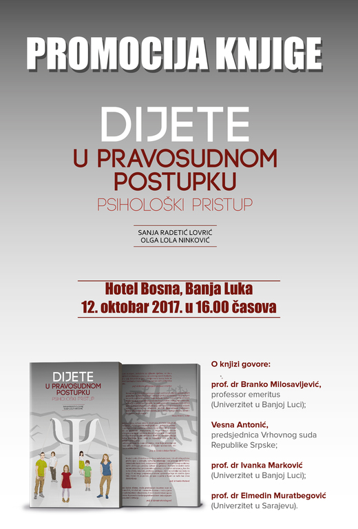 Професорка Сања Радетић Ловрић и руководилац Одјељења за подршку свједоцима Окружног суда Бања Лука Олга Лола Нинковић, ауторке су књиге ,,Дијете у правосудном поступку - психолошки приступ’’. Судија Весна Антонић, која је уједно и рецензент књиге, казала је да иновативност дидактичког приступа у изради публикације „Дијете у правосудном поступку –психолошки приступ“ омогућује да је са разлогом могу користити не само савјетници/сарадници, него студенти, судије и тужиоци, јер се с правом може рећи да је ова публикација све оно што је пракса у доброј мјери потврдила, а теорија у потпуности истражила. ,,Књига нуди прозор у унутрашњи свијет злостављане дјеце, који је тежак, али и пун наде и могућности за позитивним промјенама, ово дјело без икакве дилеме, може представљати изузетан извор за унапређење научних, стручних али и наставних процеса’’, објашњава проф. др Иванка Марковић.