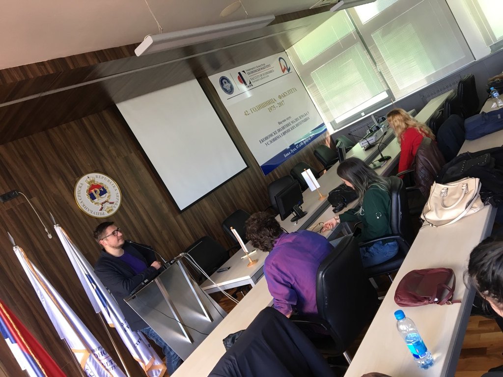 Домаћин гостима са Катедре за англистику испред Економског факултета био је проф. др Саша Петковић, продекан за наставу.