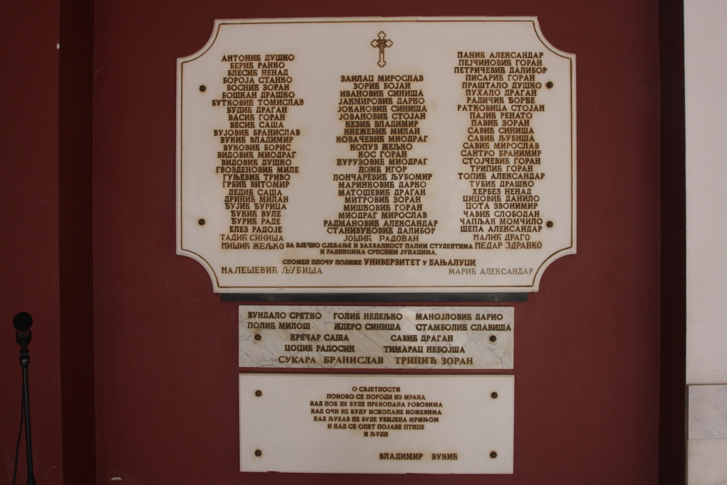 Универзитет у Бањој ЛуциОпштеЗа 87 студената и радника Универзитета у Бањој Луци (УНИБЛ), који су погинули у протеклом одбрамбено-отаџбинском рату као припадници Студентске бригаде и редовни војници Војске Републике Српске, 6. новембра 2017. године служен је парастос и положени су вијенци.
