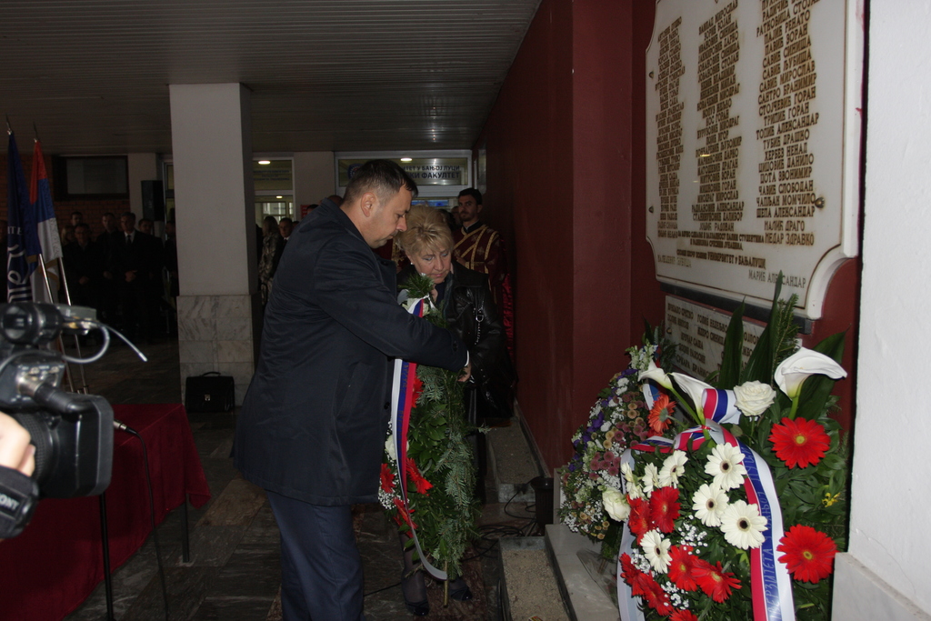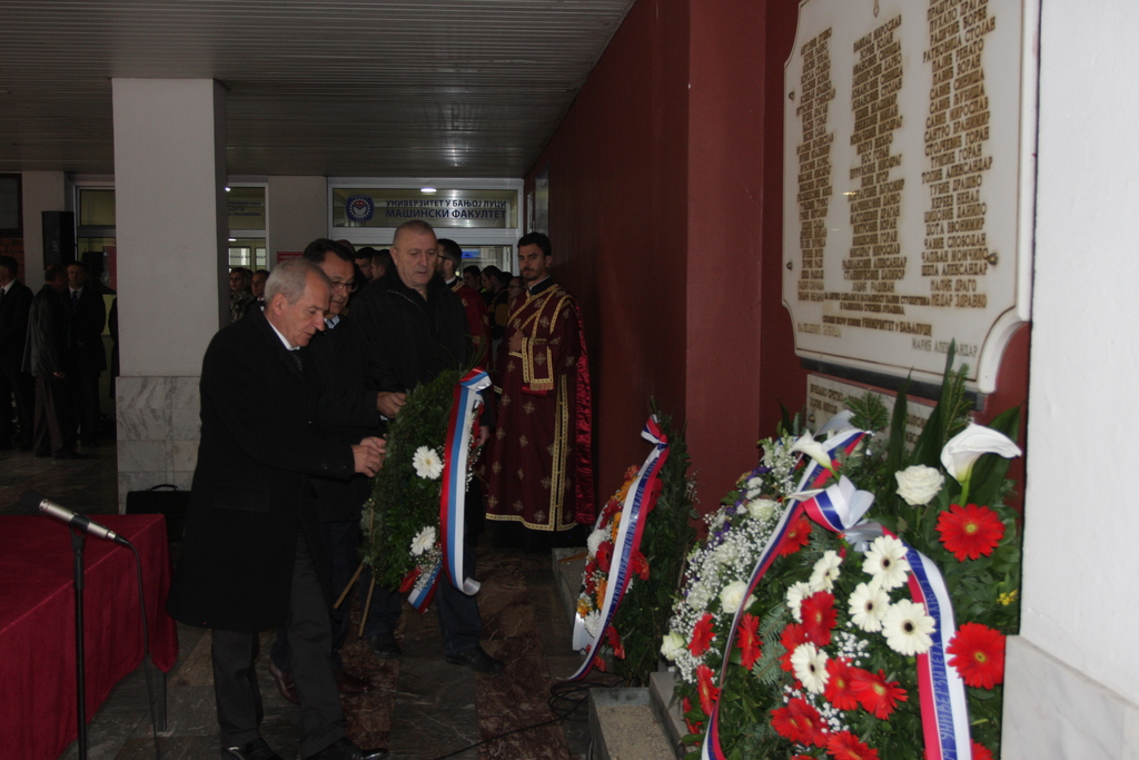 Вијенци су положени код спомен-плоче на платоу између Правног и Машинског факултета, а испред Универзитета положили су их проф. др Милан Матаруга, ректор УНИБЛ, проф. др Биљана Антуновић, проректорица за међународну сарадњу и проф. др Рајко Гњато, предсједник Управног одбора УНИБЛ.
