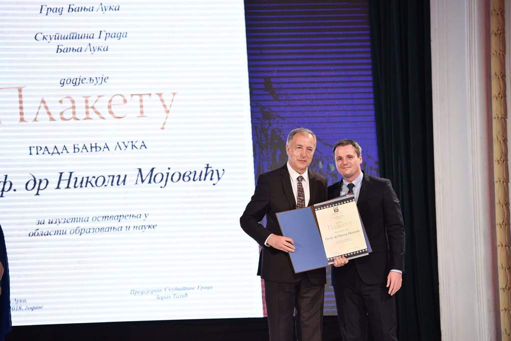 Плакета града уручена је др Николи Мојовићу, редовном професору Правног факултета на Универзитету. Плакету града добила је и др Сарита Вујковић, директор Музеја савремене умјетности РС и професор Академије умјетности Универзитета у Бањој Луци.