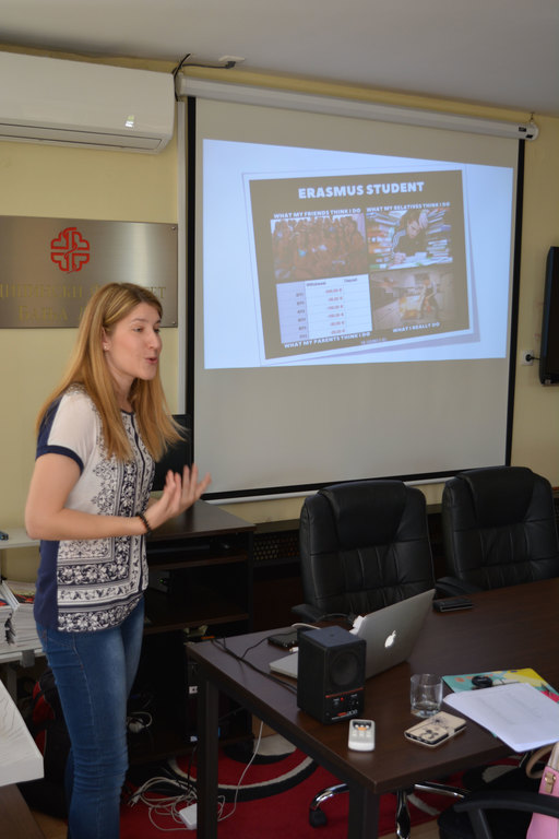 Практичне информације о начину на који је организована размјена на Универзитету у Бањој Луци и које су могућности на располагању студентима пренијели су доц. др Синиша Лакић, академски координатор за међународну размјену студената и особља на Филозофском факултету и Јелена Рожић, ма, виши стручни сарадник за међународну и међууниверзитетску сарадњу.