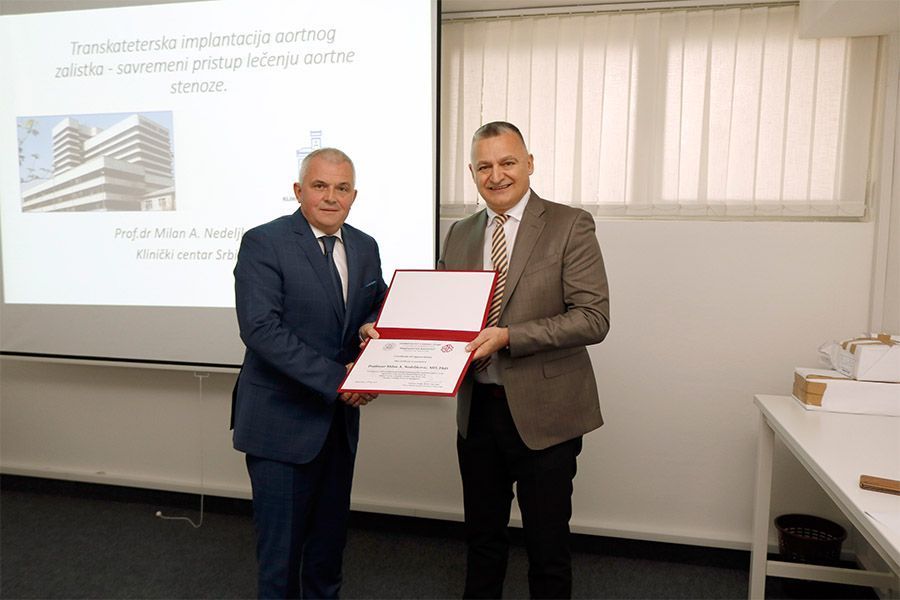 Тема предавања које је одржао проф. Недељковић је ''Транскатетерска имплантација аортног залистка - савремени приступ лечењу аортне стенозе''.
