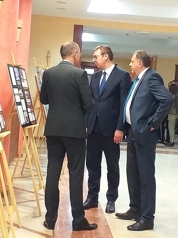 Проф. др Горан Латиновић одржао је у Радничком дому историјски час о страдању Срба (1991‒1995) и био водич Милораду Додику, српском члану Предсједништва БиХ, и Александру Вучићу, предсједнику Републике Србије, кроз изложбу Опомена. Страдање Срба (1991‒1995). Аутори изложбе су дипломирани историчари Предраг Лозо и Драгослав Илић, који су завршили студије на Филозофском факултету Универзитета у Бањој Луци, под менторством професора Латиновића. Такође, Лозо и Илић су студенти другог циклуса студија на истом Факултету (смјер: Национална савремена историја), гдје пишу мастер радове о страдању српског народа у 20. вијеку, такође под менторством професора Латиновића.