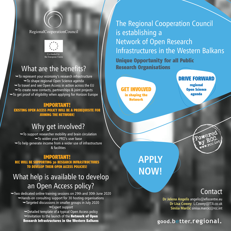 Наука и развојУниверзитет у Бањој ЛуциОпштеКао дио Програма подршке Отвореном приступу истраживачким инфраструктурама на Западном Балкану, Регионално вијеће за сарадњу организује дводијелни вебинар 29. и 30. јуна 2020. године у период од 14.00-17.30 часова.