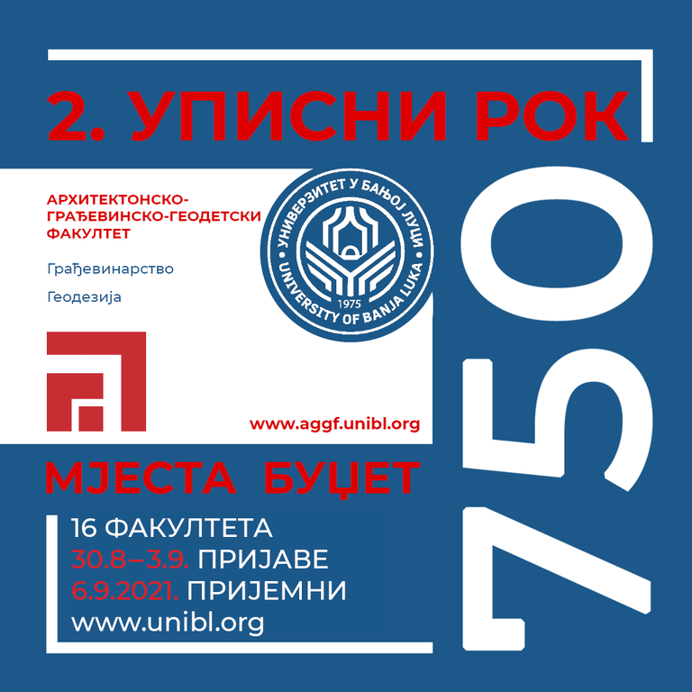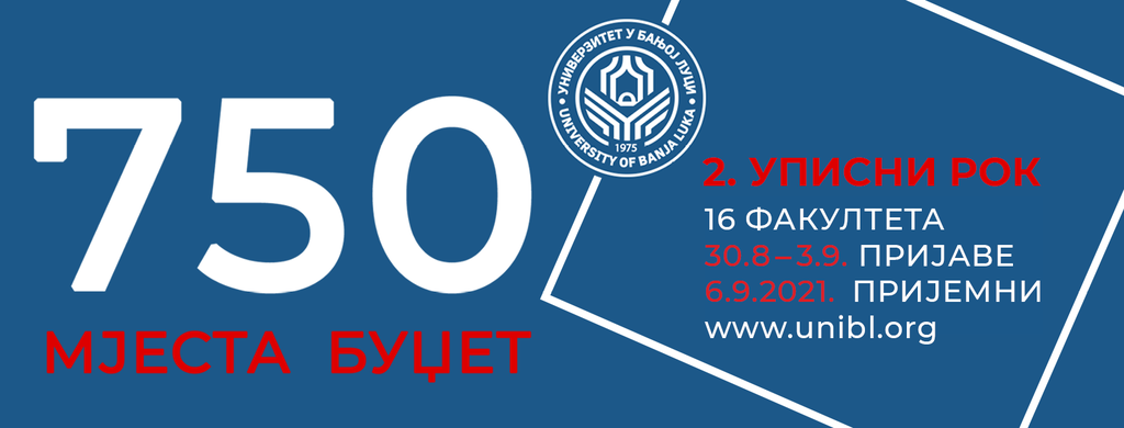 Пријављивање кандидата за други уписни рок на Универзитету у Бањој Луци, почиње 30. августа 2021. године, а завршава 3. септембра 2021. године.