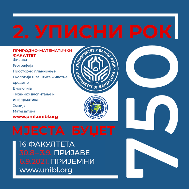 Универзитет у Бањој ЛуциОпштеУниверзитет у Бањој Луци организује други уписни рок за упис студента у прву годину студија у академској 2021/2022. години.