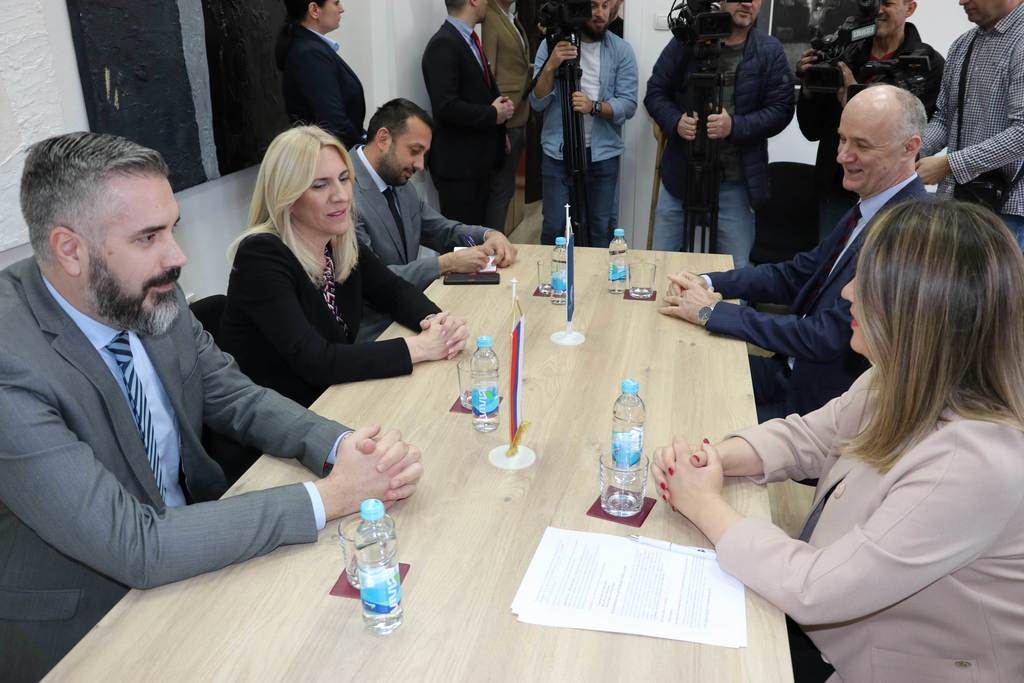 Током ове посјете предсједница и министар разговарали су са ректором Универзитета у Бањој Луци проф. др Радославом Гајанином и деканицом Академије умјетности проф. Драганом Пурковић Мацан, МА, те обишли просторије Академије, гдје су имали прилику да се увјере у квалитет рада ове чланице Универзитета.