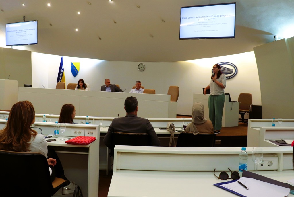 Инфо-дан, одржан у Парламентарној скупштини БиХ, отворио је Сувад Џафић, помоћник министарке цивилних послова БиХ, који је у уводном обраћању истакао значај програма Хоризонт Европа наглашавајући важност учешћа научне заједнице у програмима Европске уније. С друге стране, CОSТ координаторка за БиХ из Министарства цивилних послова Алма Хасановић представила је основне карактеристике програма и учешће у њему. Њена презентација је обухватила кључне информације о циљевима програма, доступним средствима и приоритетима.