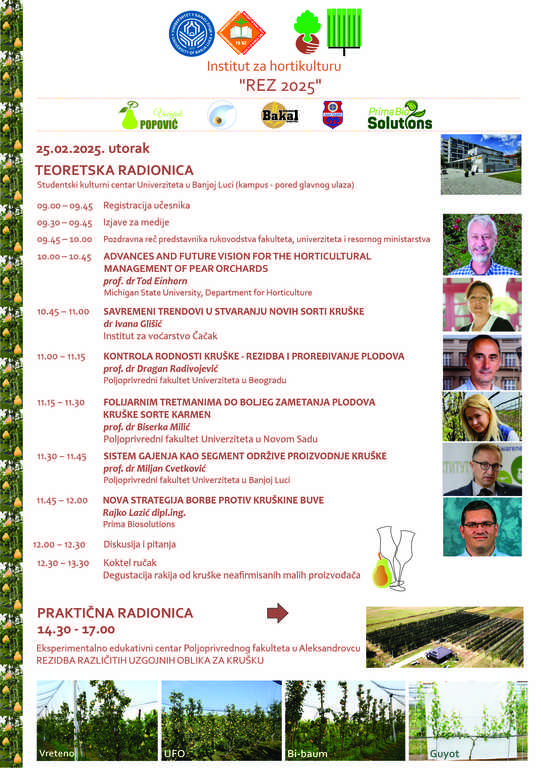 Наука и развојОпштеИнститут за хортикултуру Пољопривредног факултета организује едукативну радионицу ,,REZ 2025ˮ, која ће се одржати 25. фебруара 2025. године у просторијама Студентског културног центра Универзитета у Бањој Луци.