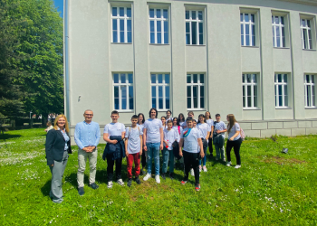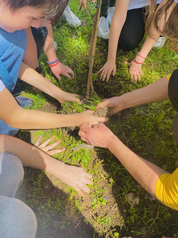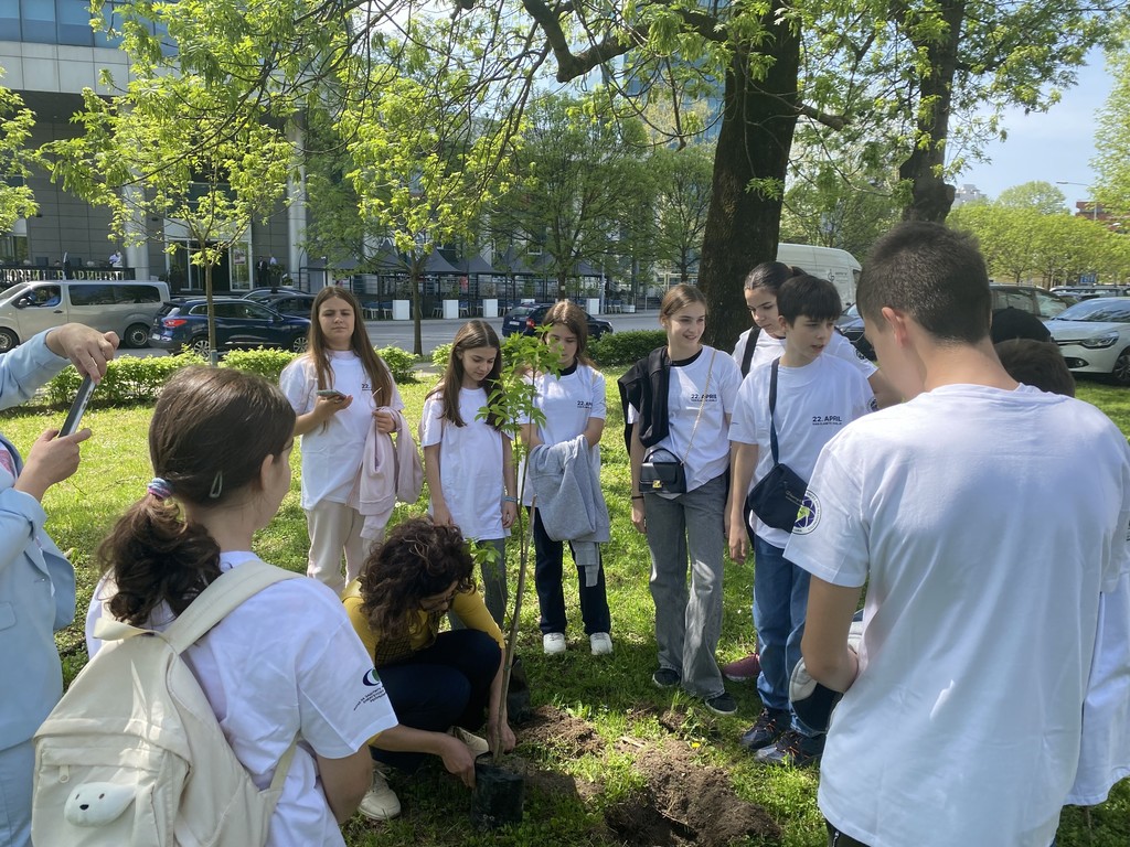 Након предавања, ученици су симболично засадили саднице дрвећа у дворишту ПМФ-а.