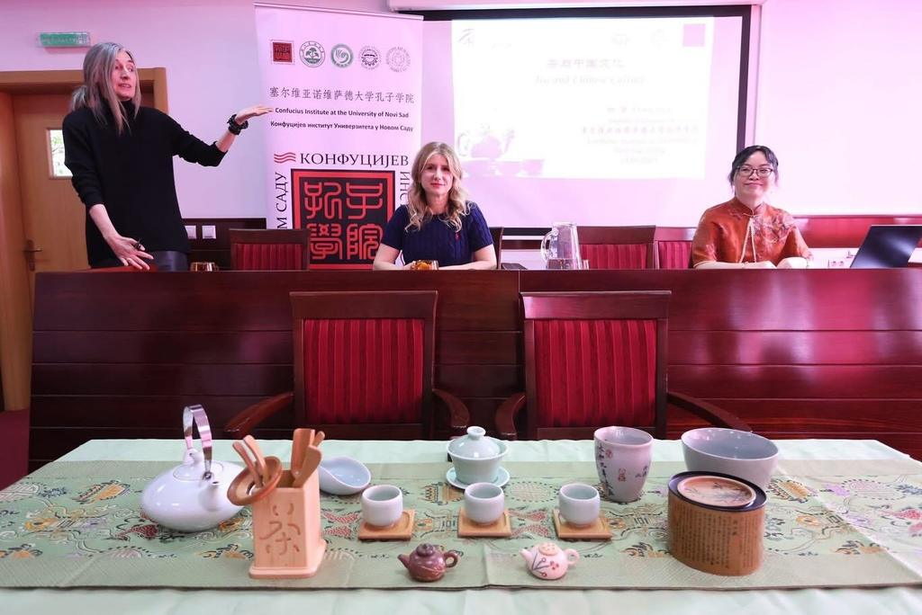 Посјетиоци су имали прилику да уживају у чајној церемонији коју су извеле представнице Конфуцијевог института из Новог Сада, уз демонстрацију древних ритуала припреме и служења чаја.